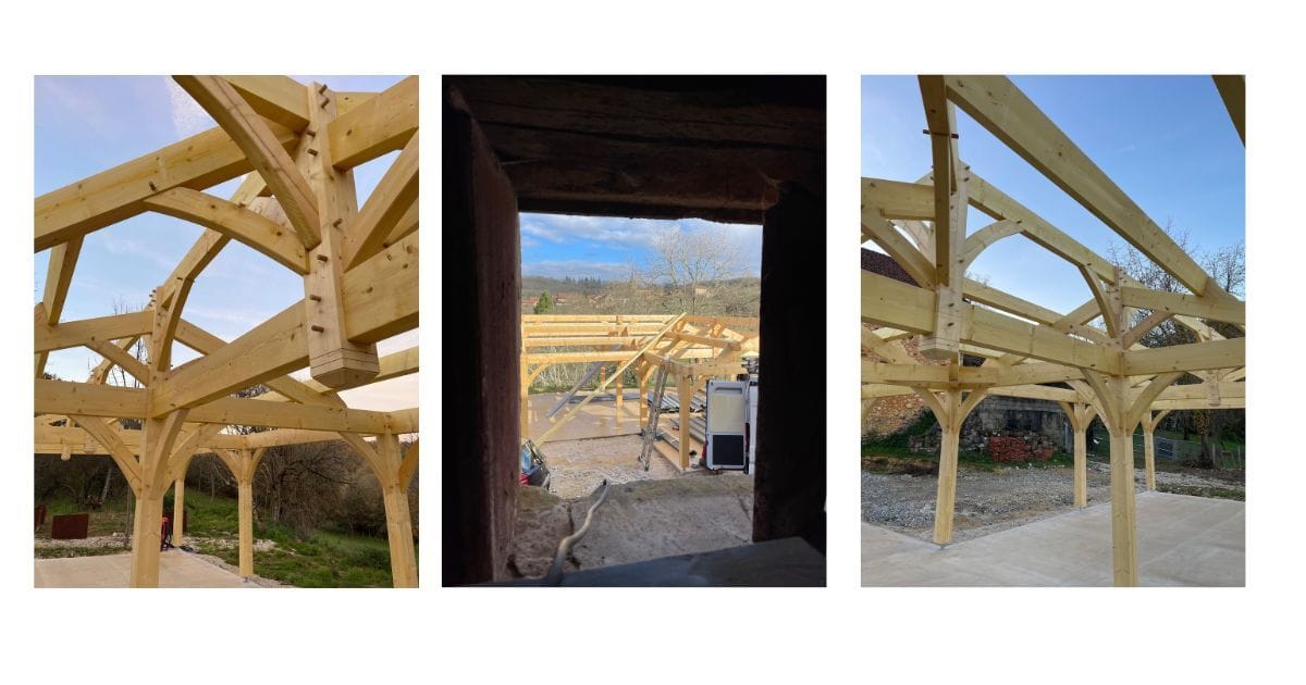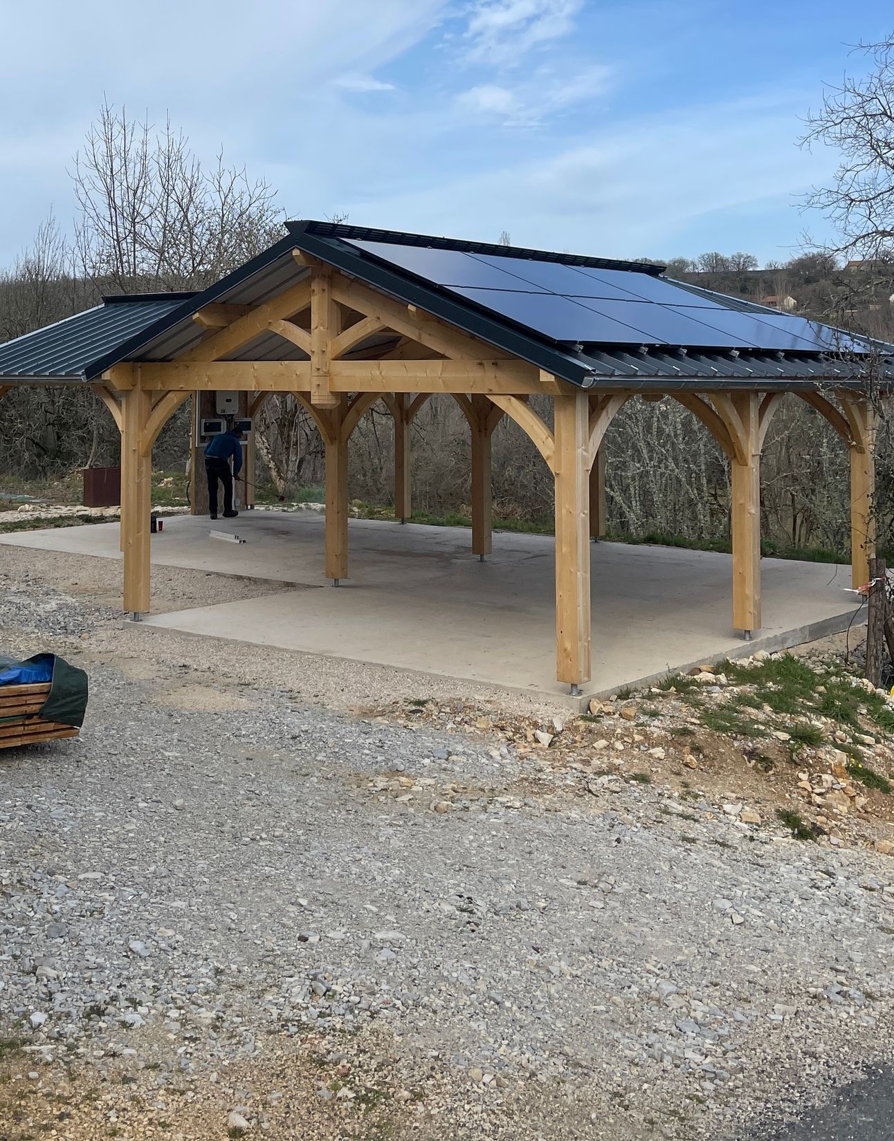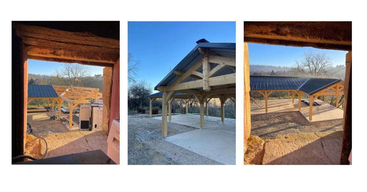 When the Abri roof first went up, metal (bac acier) instead of traditional tiles, I had a moment of serious doubt. It looked out of place, jarring against the beautiful charpente of the structure itself. But now, with the panels installed? Iām relieved. The black-on-black finish works, no garish orange tile border in sight, and the whole thing finally makes sense. Phew.