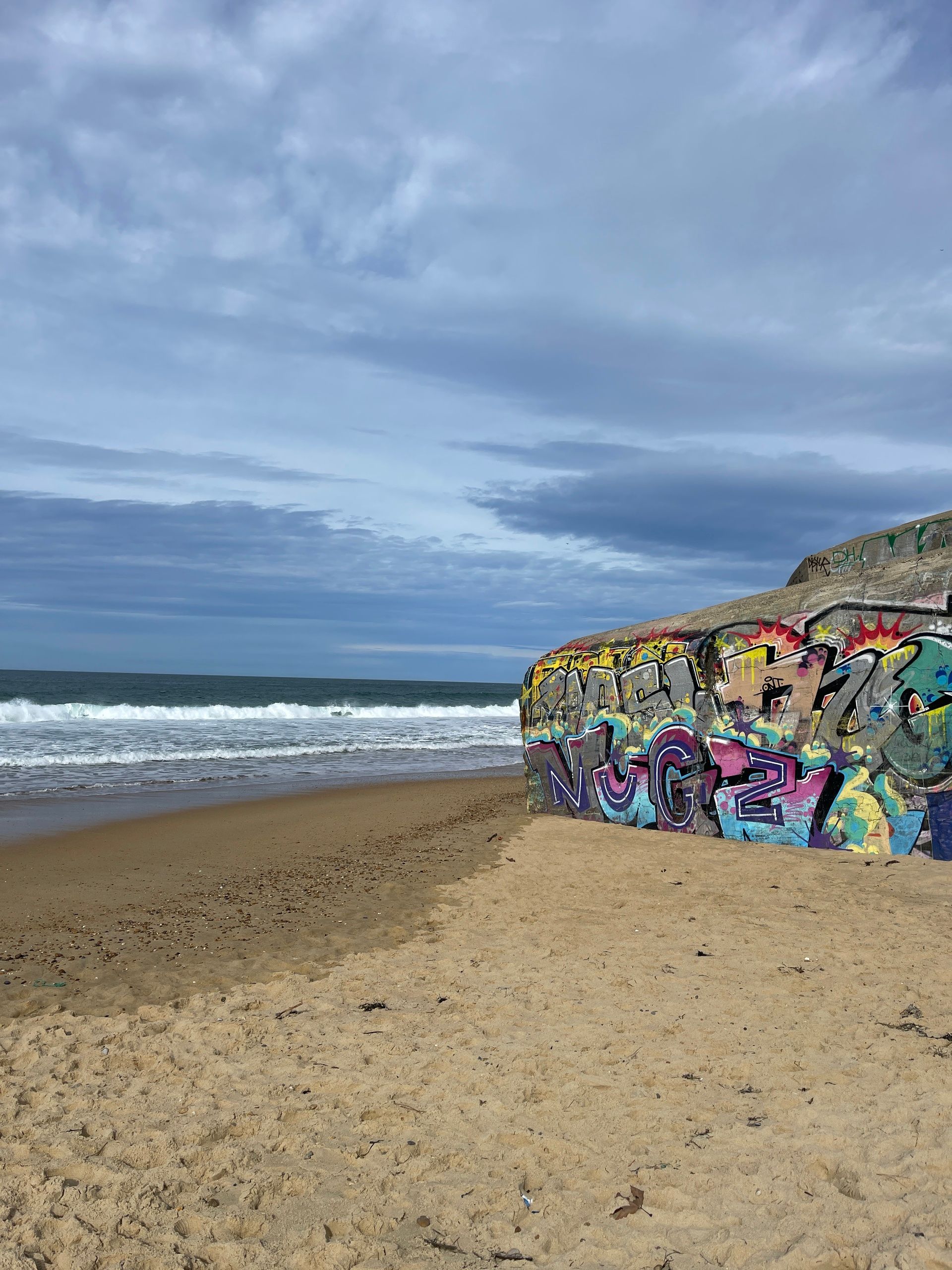 The Atlantic beaches are wild and beautiful, perfect for dog-rolling, kite-flying (thank you to friends for the kite loan), and general messing around. Remnants of the great Atlantic wall still punctuate the coastline, stark reminders of a very different past amid all that energy and freedom.
